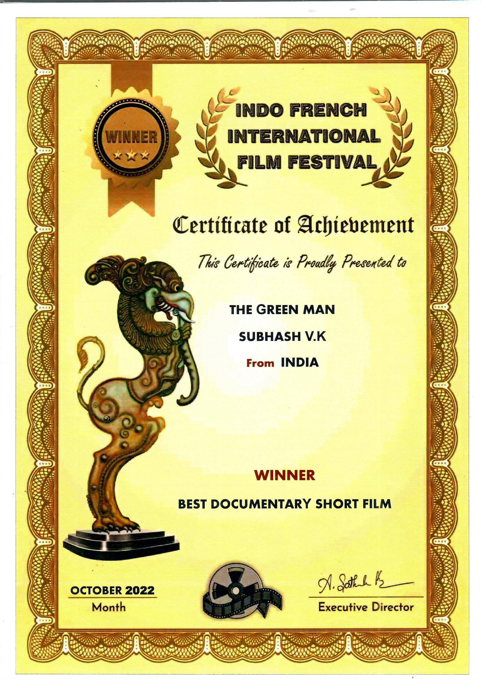 The Green Man – Best Documentary Short film- Indo French Interational Film Festival