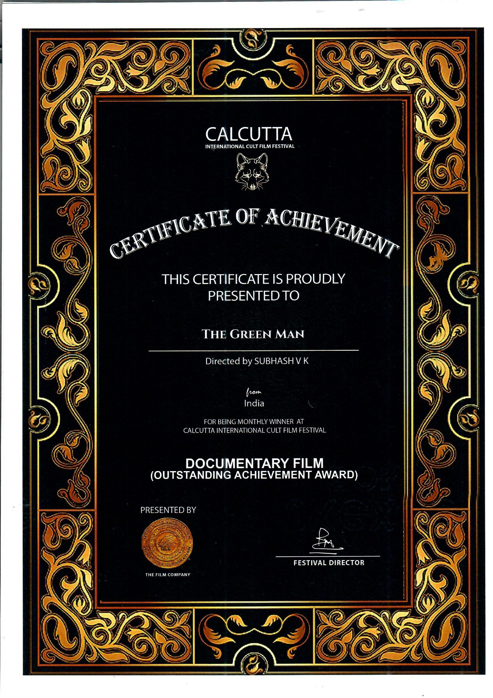 The Green Man – Outstanding achievement award- Calcutta International Cult Film Festival’