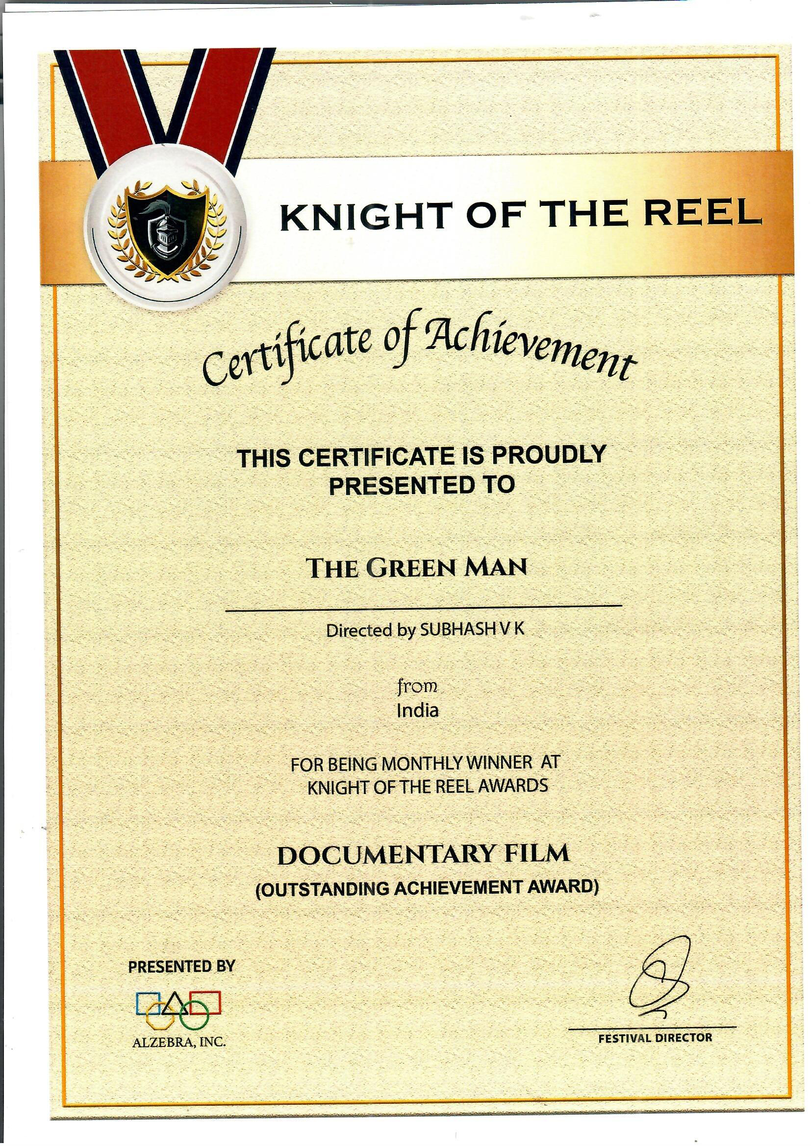 The Green Man – Outstanding achievement award- Kinght of the Reel