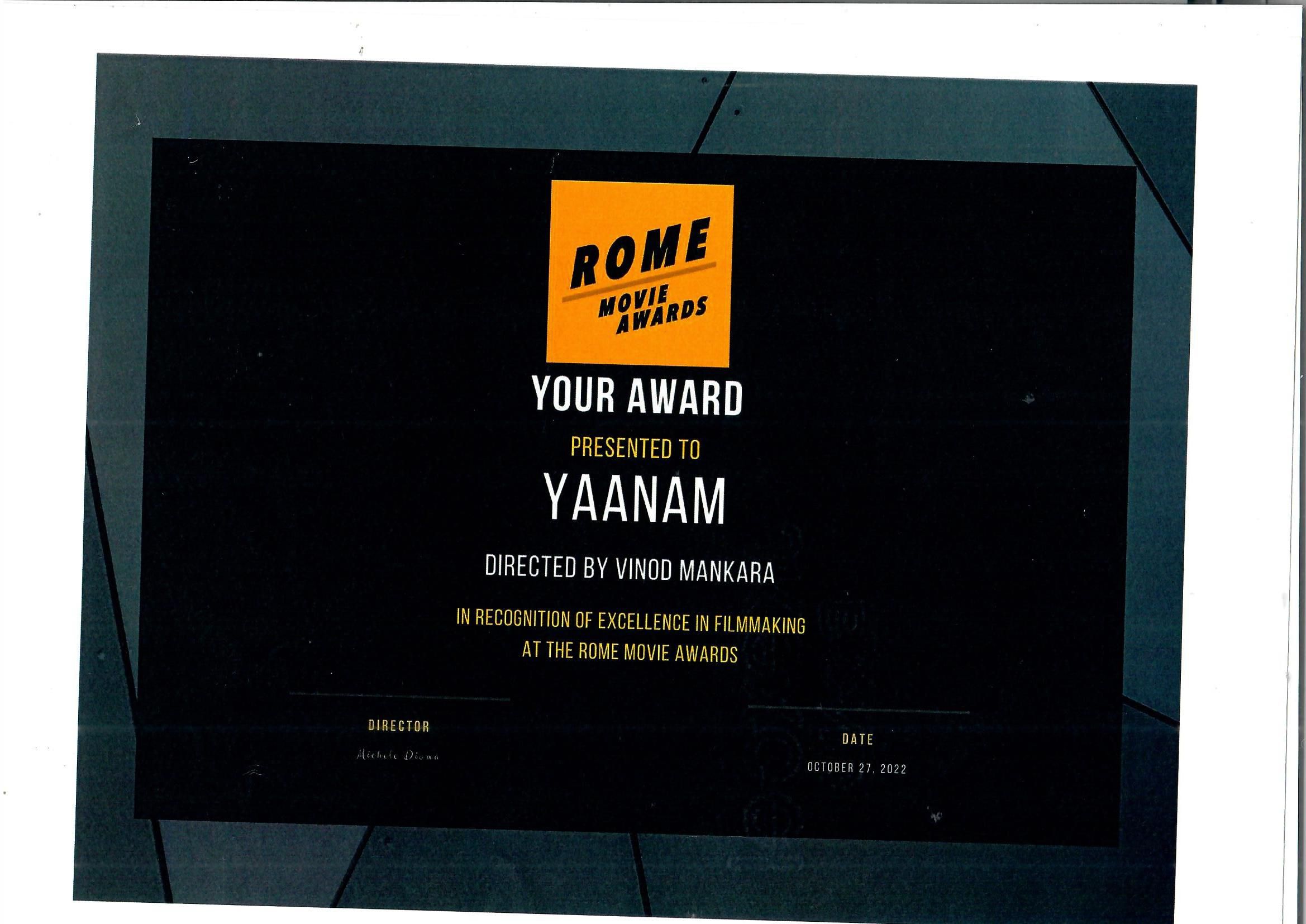 Yaanam – Excellence in Filmmaking- Rome Movie Awards