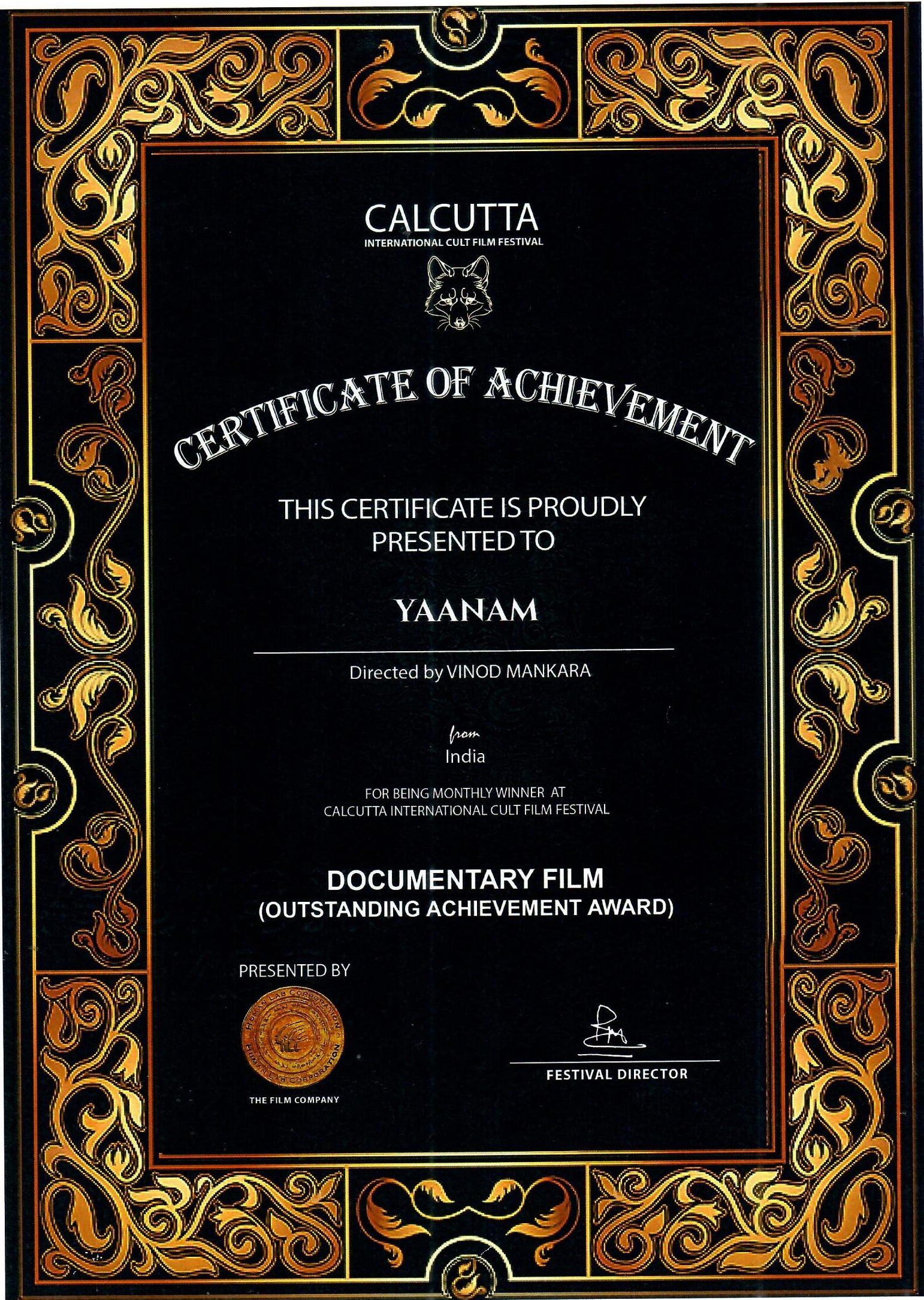 Yaanam – Outstanding achievement award for Calcutta International Cult Film Festival